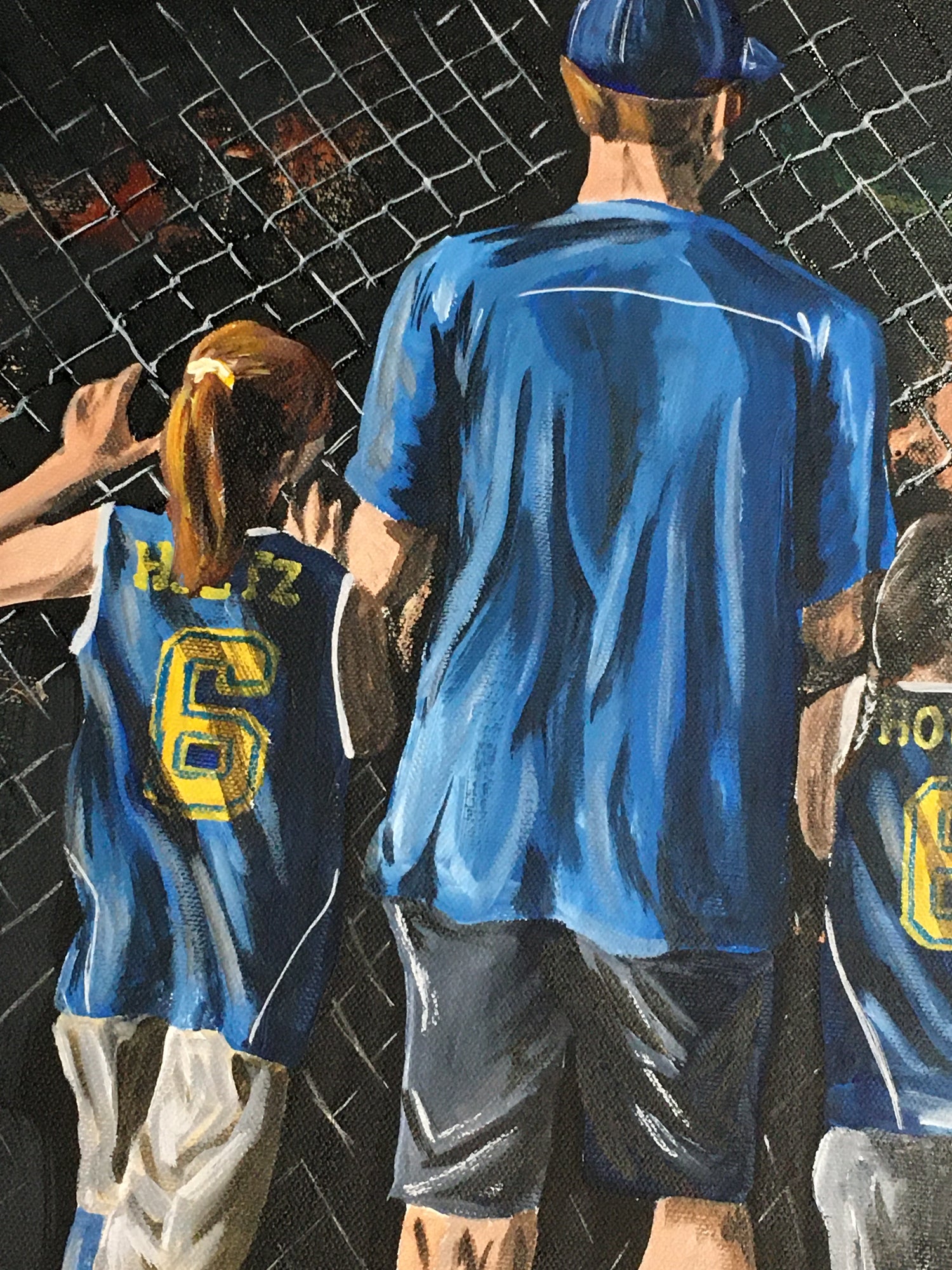 Make an impact with your players this year! This is a made to order painting on stretched canvas signed by the artist, Candice Griffy. Choose your own colors, name and number for this unique piece of artwork! The canvas has stapled back and is ready to hang directly on the wall so there is no need for further framing!