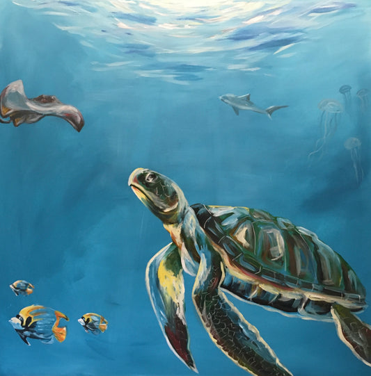 FREE SHIPPING - 3 PIECE AQUARIUM UNDER THE SEA PAINTING