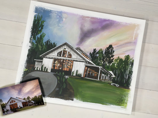 FREE SHIPPING - Hand Painted House Portrait on Gallery Canvas