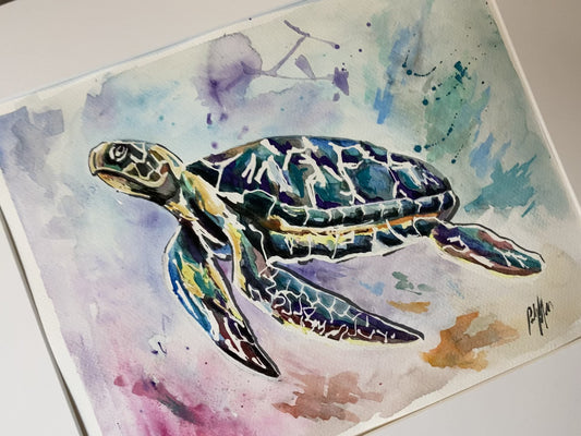 FREE SHIPPING Print from Hand Painted Watercolor 11x14 Unframed Sea Turtle